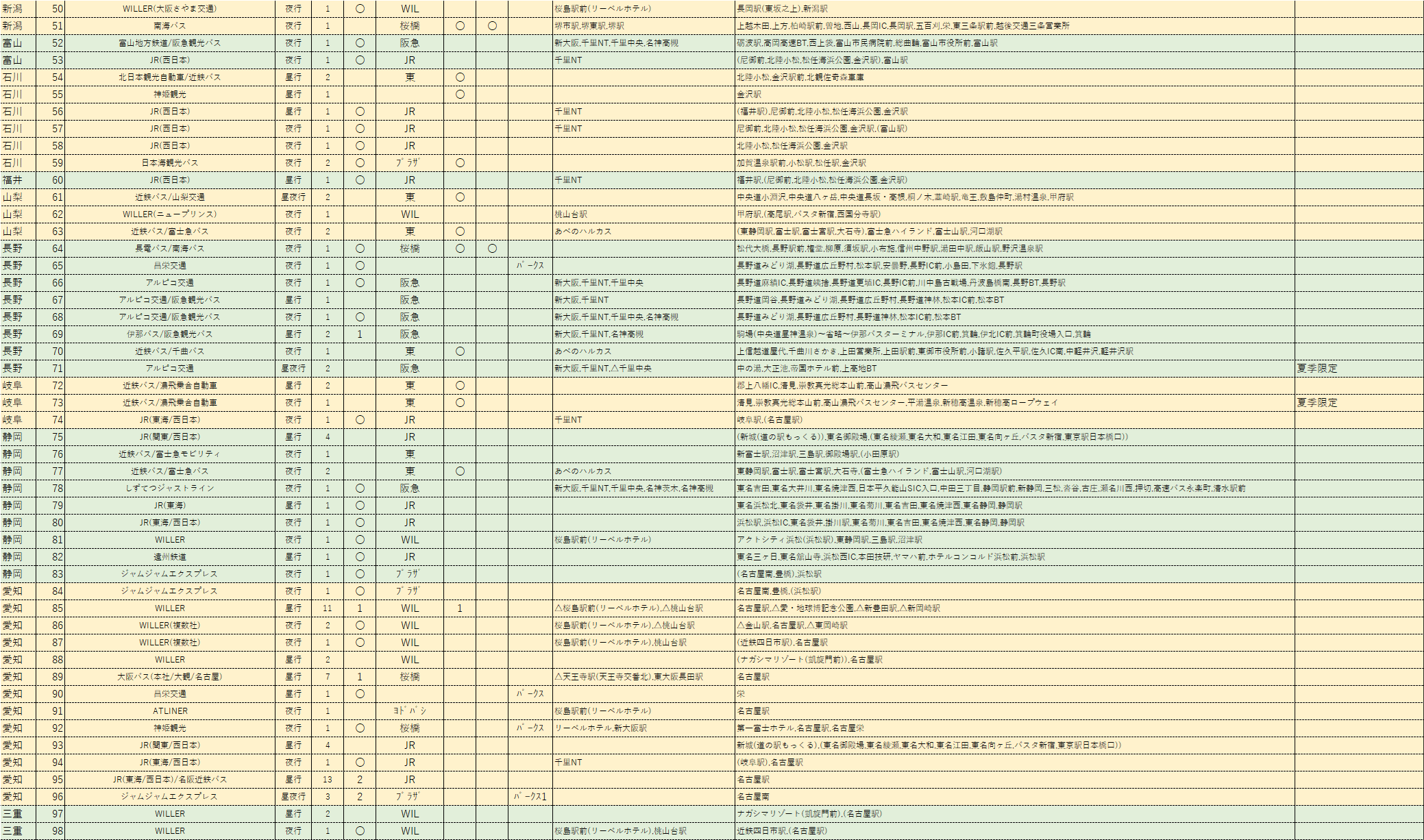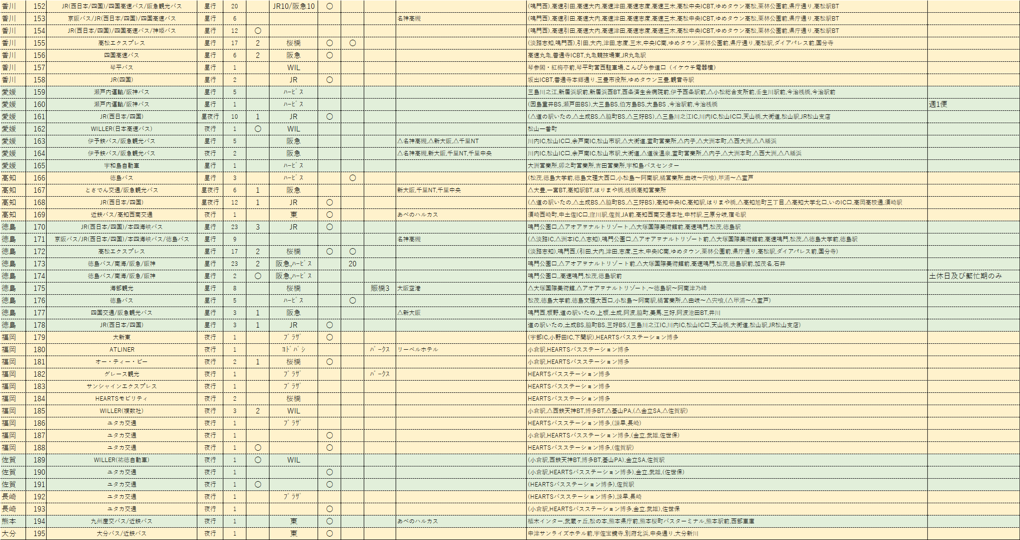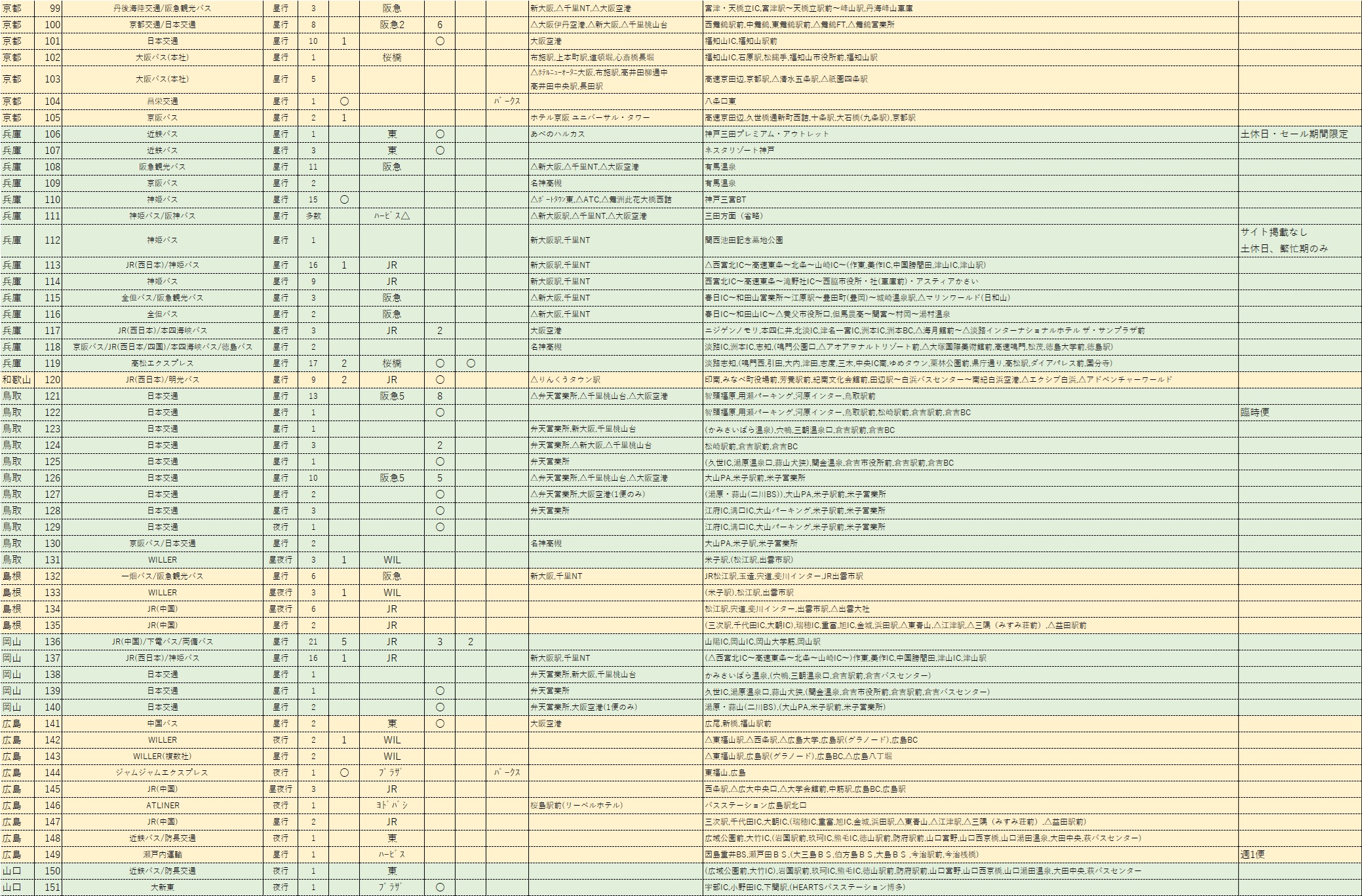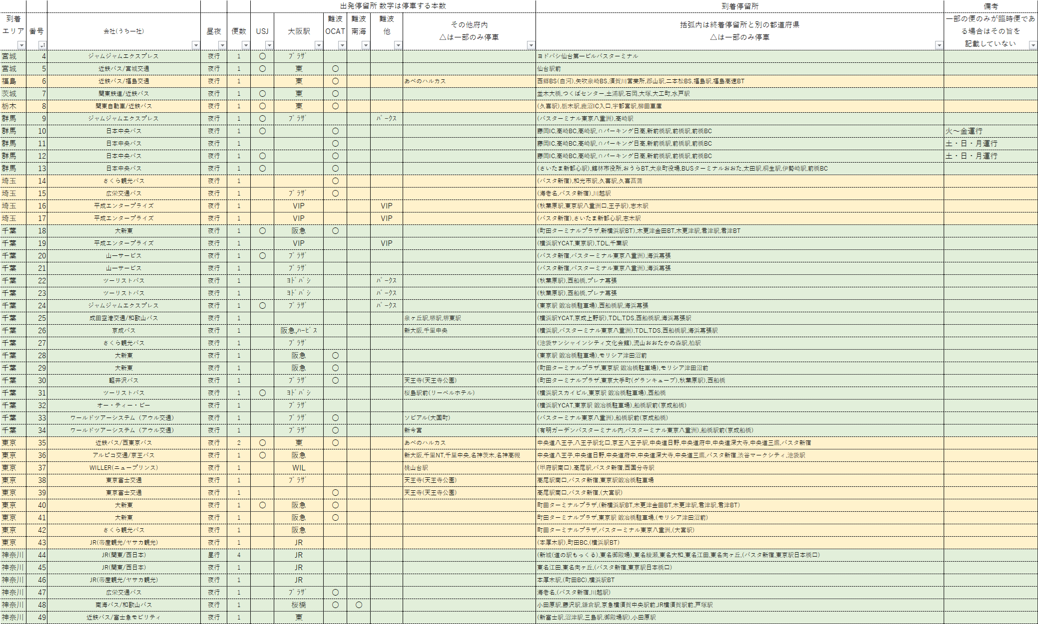【データ集】2024年8月時点での大阪府内発の高速バス一覧